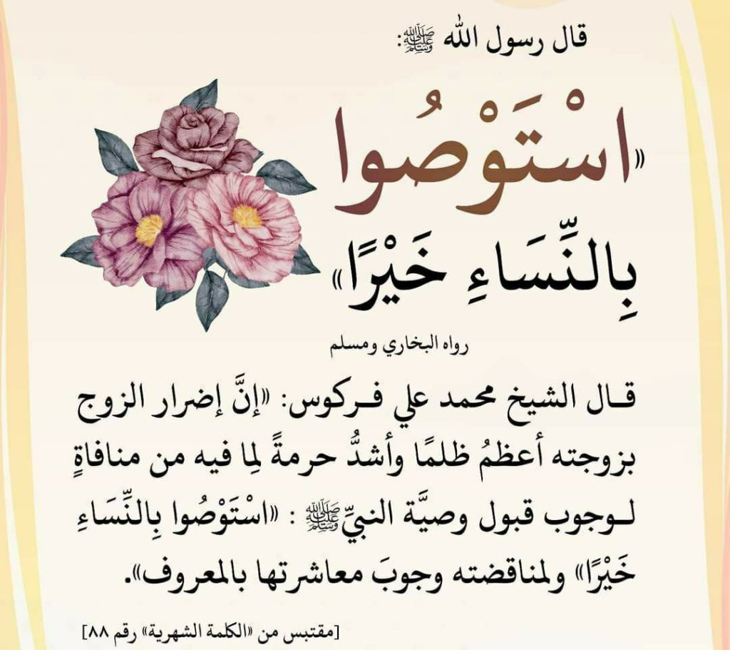 ” إنَّ إضرار الزوج بزوجته أعظمُ ظلمًا وأشدُّ حرمةً لِما فيه من منافاةٍ لوجوب قبول وصيَّة النبيِّﷺ :